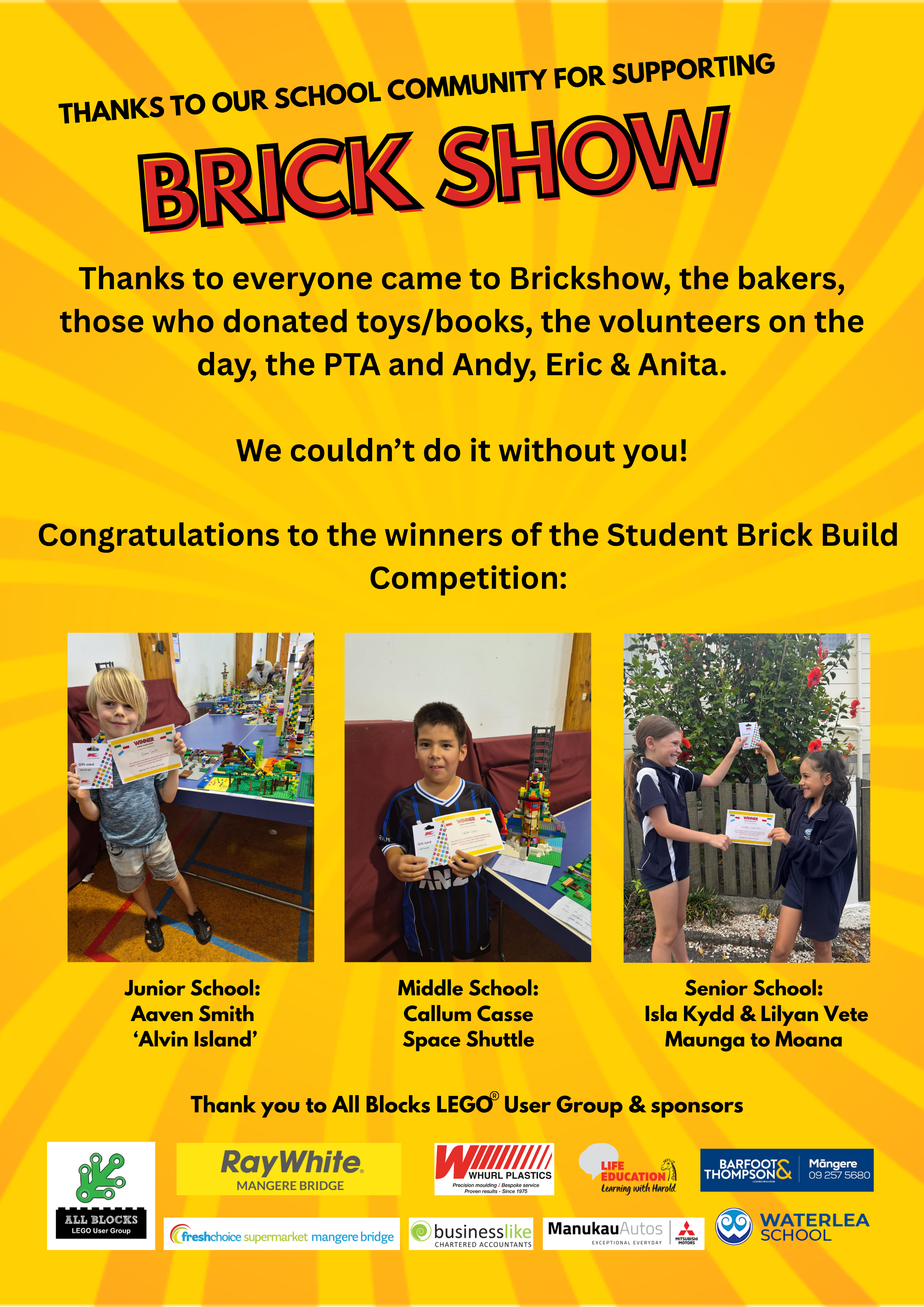 On Saturday our wonderful PTA held the Brick Show at Waterlea. It was a fantastic community event with epic displays from All Blocks RLUG. There was delicious baking – thanks to our wonderful school whaanau. We also had a sausage sizzle and a second hand toy and book sale. A number of our Waterlea tamariki entered their own Lego creations in the build competition and their creativity and aumangea was outstanding! Harold the Giraffe made a guest appearance and so many people showed up from our wider community.